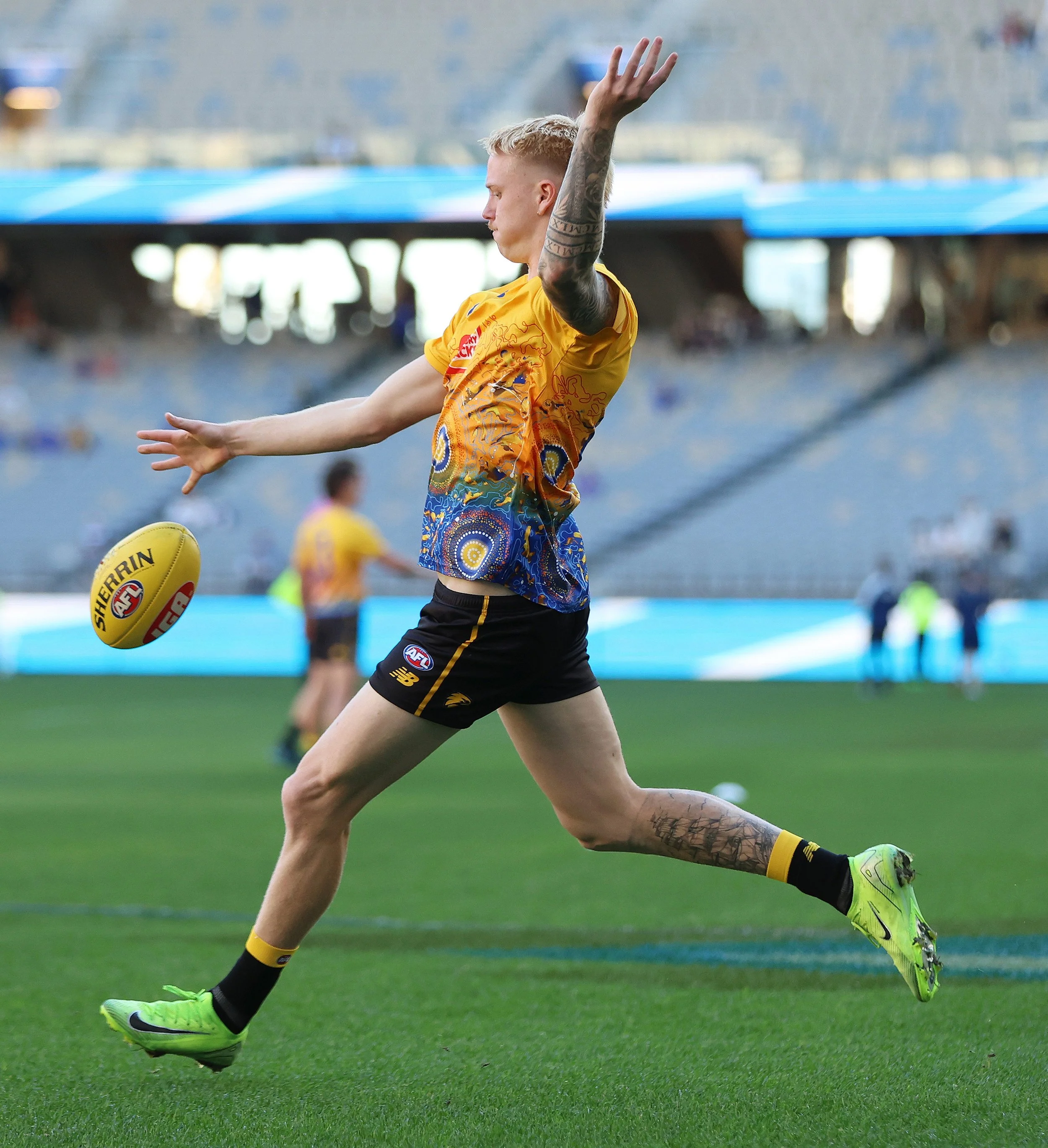 West Coast Eagles game day partnership: Stadium-wide digital signage (boundary LEDs, scoreboard, concourse) for both WA Day festival and WAOTY awards, commemorative coin toss design